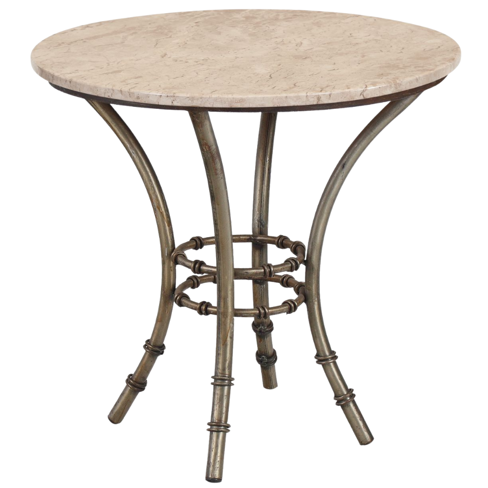 Bistrô Baixo Base Bambu Ferro Cinza com Tampo Mármore Travertino Bege