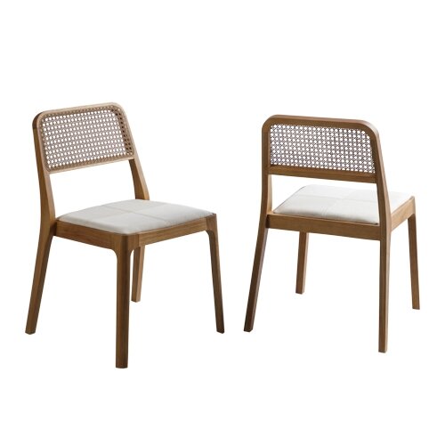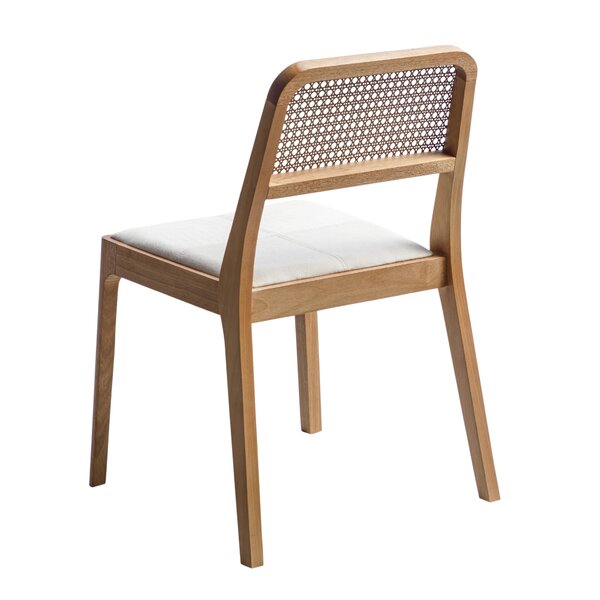 Cadeira em madeira com encosto em palhinha, leve, atemporal e naturalmente sofisticada. O assento estofado garante conforto, enquanto o design clean se adapta a qualquer estilo de décor. Ideal para composições modernas com toque clássico.