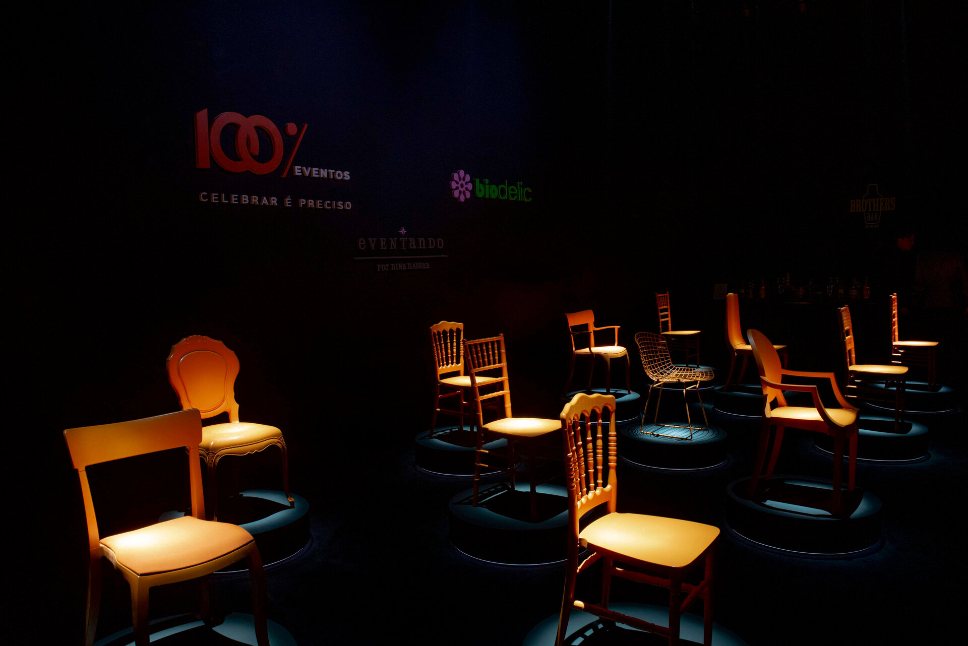 Cada elemento do ambiente parecia ter sido meticulosamente orquestrado para oferecer uma experiência sensorial intensa e memorável. O grande destaque foi o time code da @biodelicoficial, que iluminou cada cadeira e o espaço ao redor de forma sincronizada com a melodia envolvente que preenchia o ar.